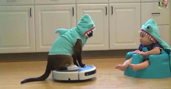 Shark Cat Entertaining Shark Baby While Riding A Roomba Why Not Soranews24 Japan News from vip.socio-corp.jp